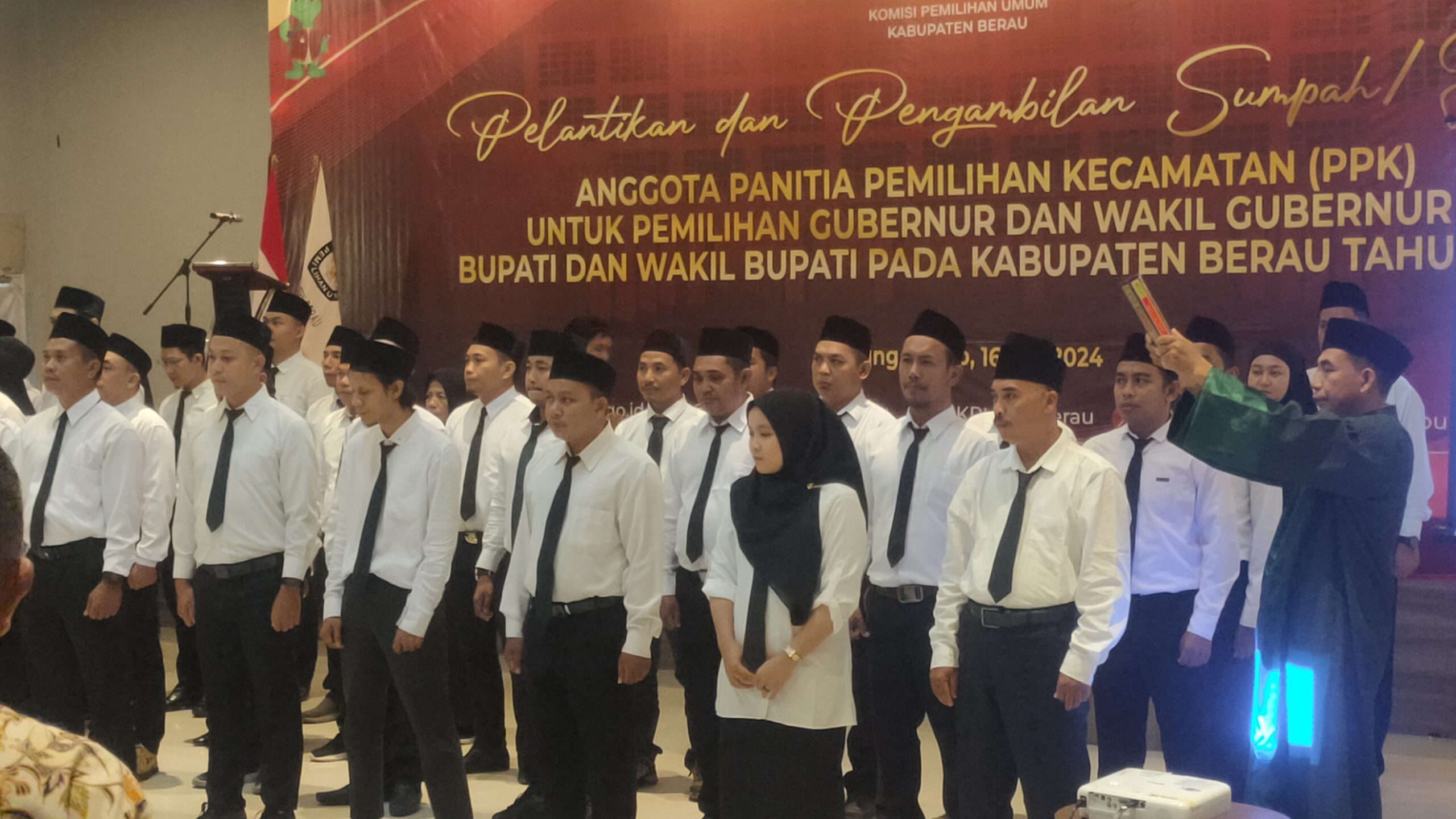 BERAUSATU.ID, TANJUNG REDEB- Komisi Pemilihan Umum (KPU) Kabupaten Berau menggelar pelantikan dan pengambilan sumpah janji Anggota Panitia Pemilihan Kecamatan (PPK) Untuk Pemilihan Gubernur dan Wakil Gubernur serta Bupati dan Wakil Bupati Kabupaten Berau Periode 2024-2029, Kamis (15/5/2024).